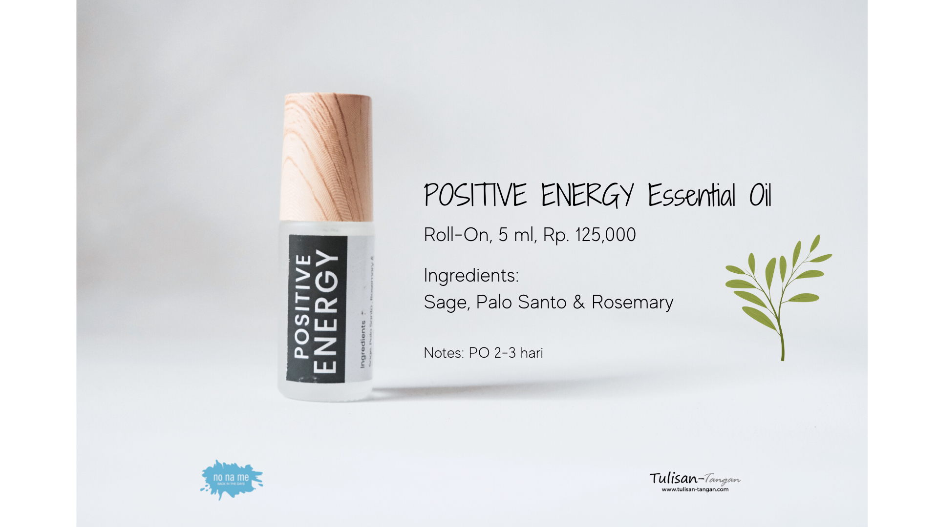 Positive Energy adalah essential oil yang memiliki aroma earthy dengan sentuhan herbs. Kandungan Sage membantu menstimulasi kerja otak dan juga menghilangkan mood negative. Sementara Palo Santo dan Rosemary memberikan menjernihkan pikiran dan mengurangi rasa cemas