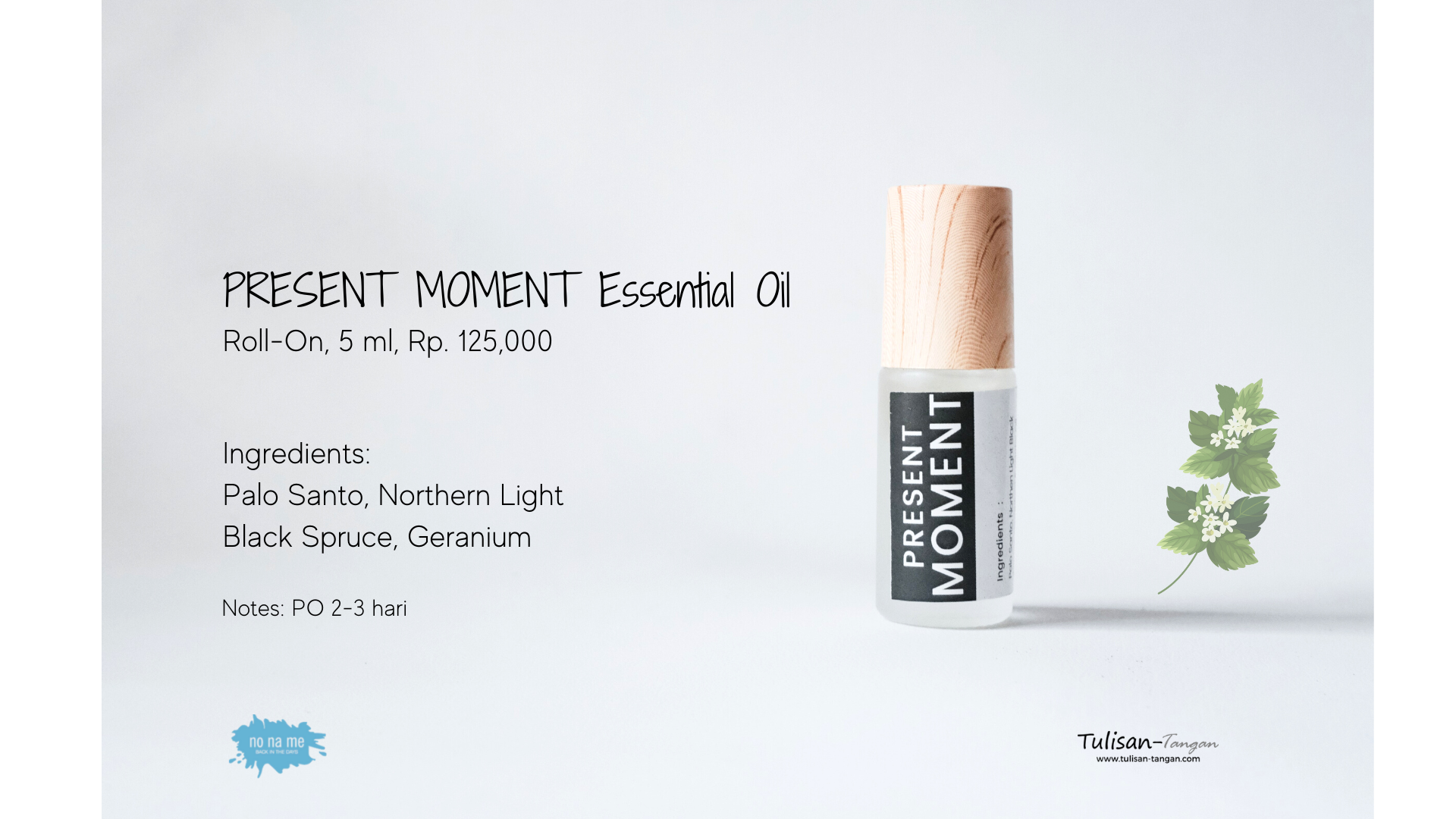 Aroma Geranium dengan light floral dan green scent bermanfaat untuk mengurangi mood swing atau overwhelming emotion sehingga dapat lebih mindful dan percaya diri. Campuran aroma woody dari Palo Santo dan grounding-earthy aroma dari Northern Light Black Spruce membangkitkan semangat.